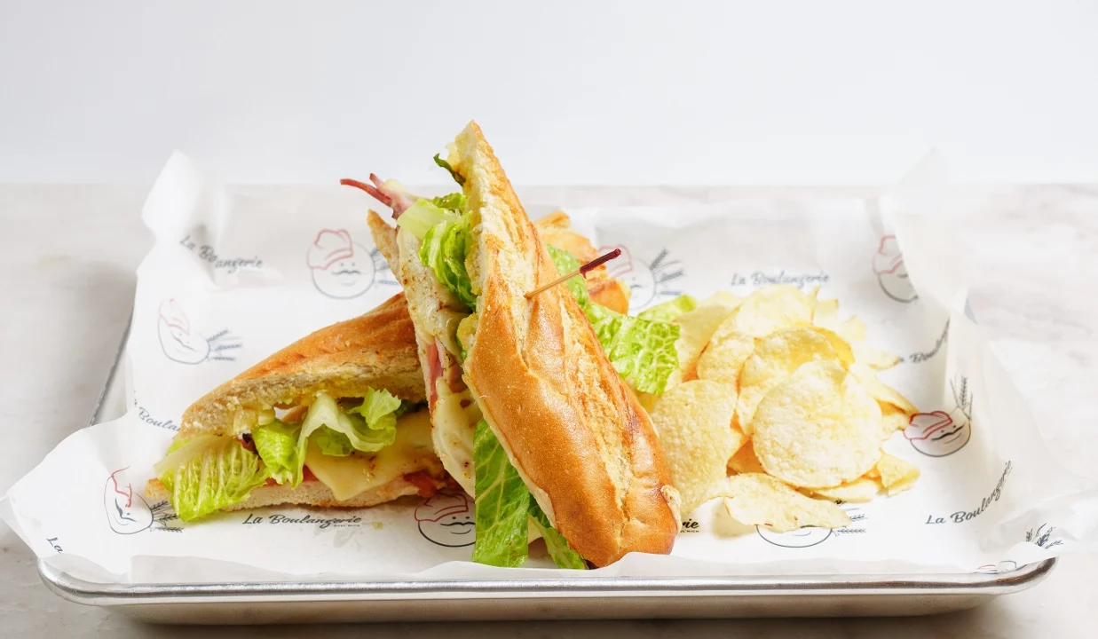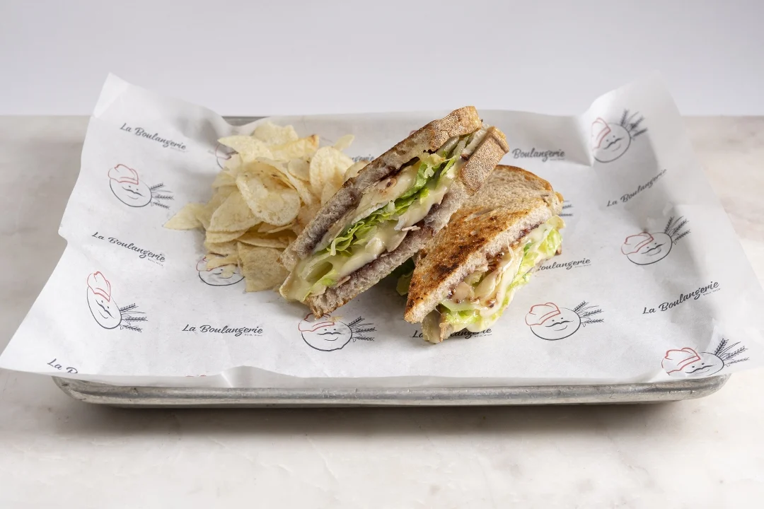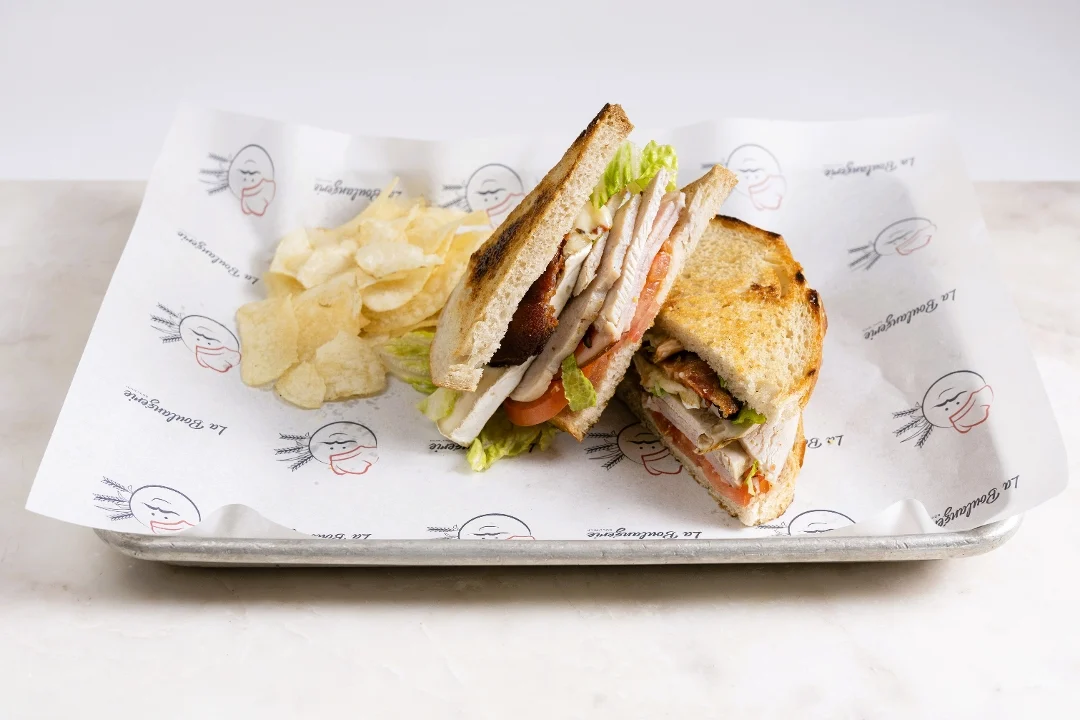 Sourdough Bread with Ham, Oven Roasted Turkey, Smoked Applewood Bacon, Brie Cheese, Mushrooms, Tomatoes, Lettuce, Dijon & Mayo