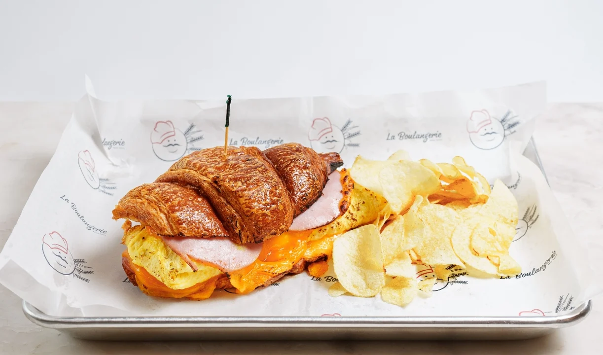 Flattened Croissant, Honey & Brie Cheese, Chorizo & Scrambled Eggs, Sun-dried Tomatoes & Green Scallions.