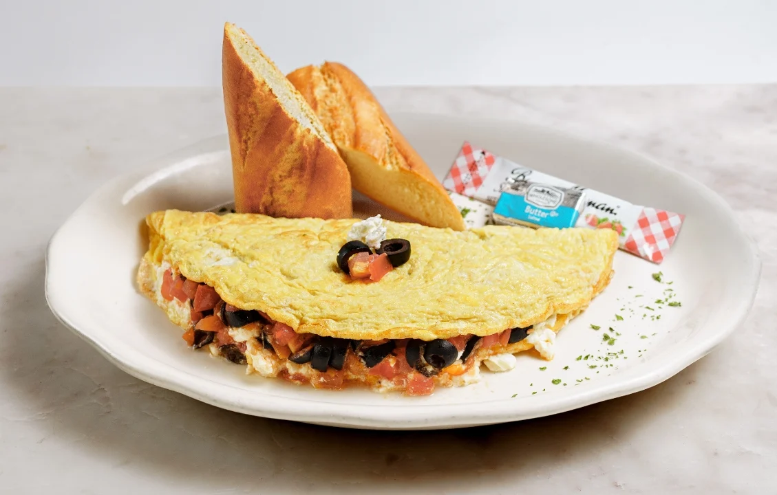 Fresh Eggs , Feta Cheese, Sauteed Tomatoes & Olives