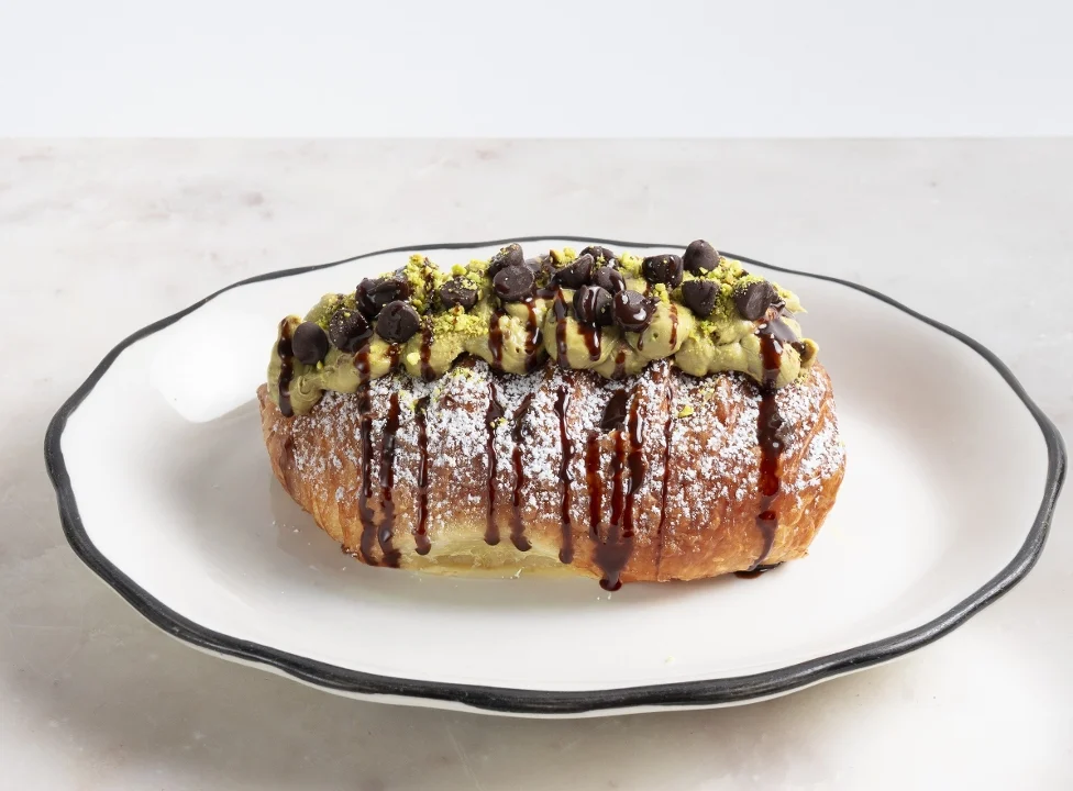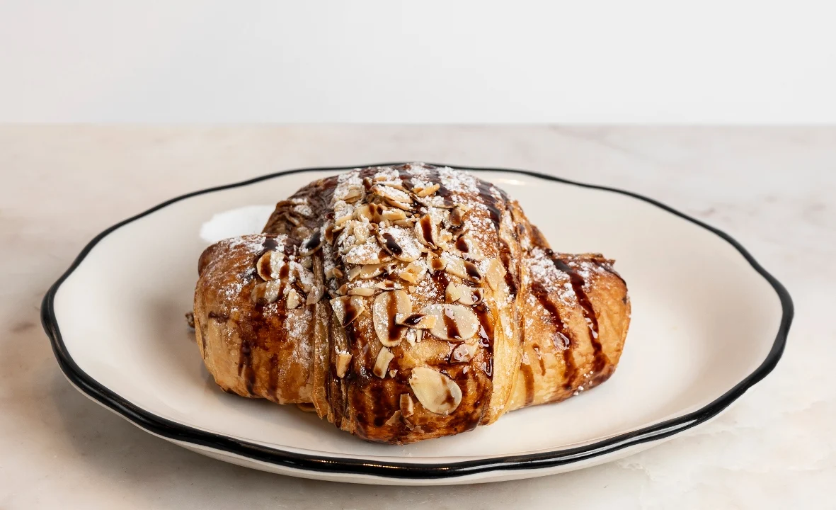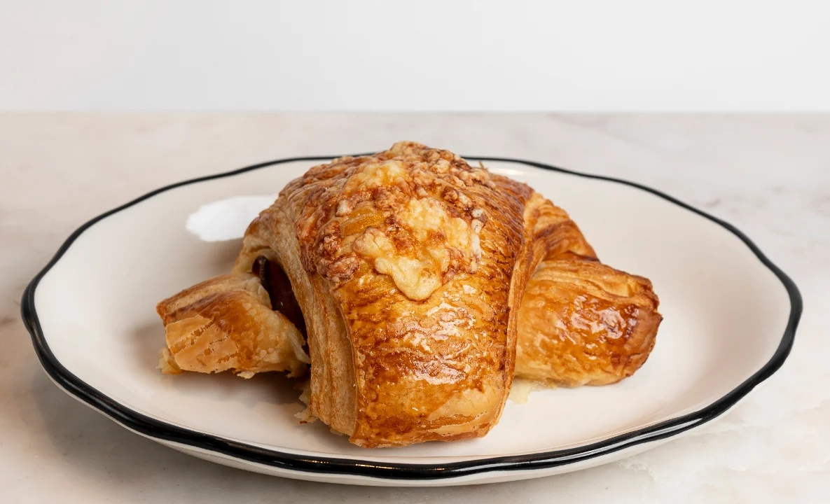 Buttery and Flaky Croissant filled with our signature almond paste and chocolate bars