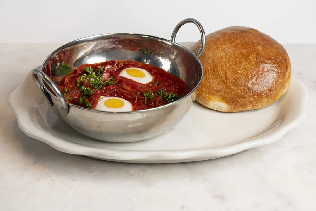 Eggs, Tomato Sauce, Peppers & Red Onions, Cumin, Paprika & Parsley. Served with our Brioche bread.