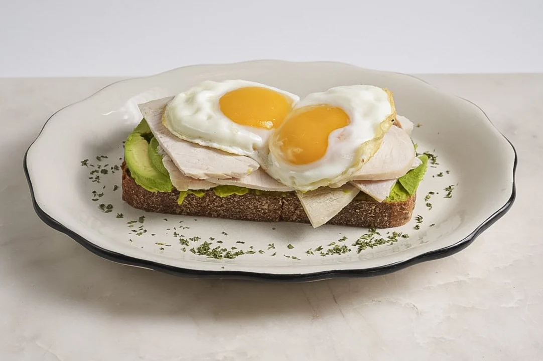 Toasted Bread, Avocado, Roasted Turkey & Eggs Over Easy