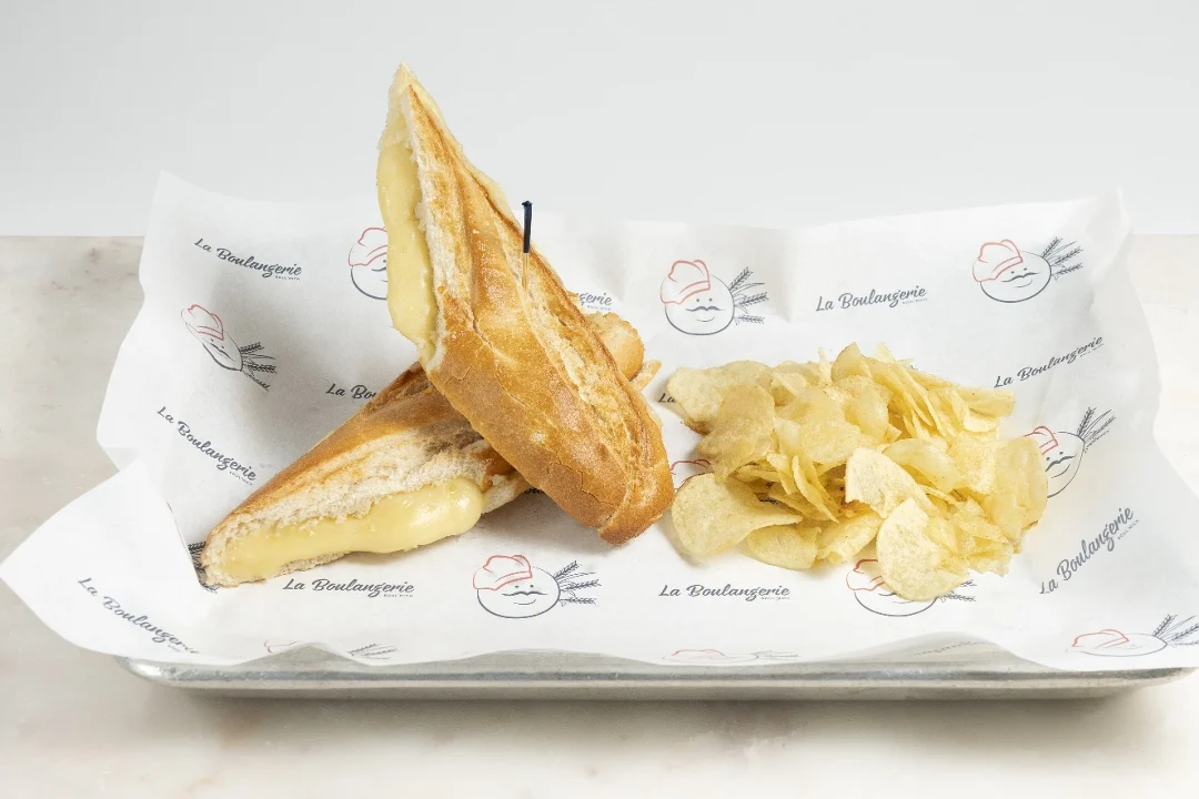 Sourdough Bread with Creamy Brie Cheese, crispy Almonds, Romaine Lettuce & Raspberry Jam. (Served Hot)