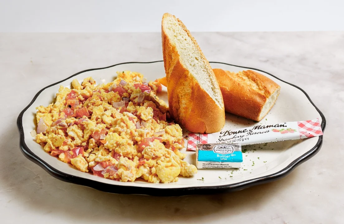 Fresh Scrambled Eggs with chopped Tomato, Onions & Parsley