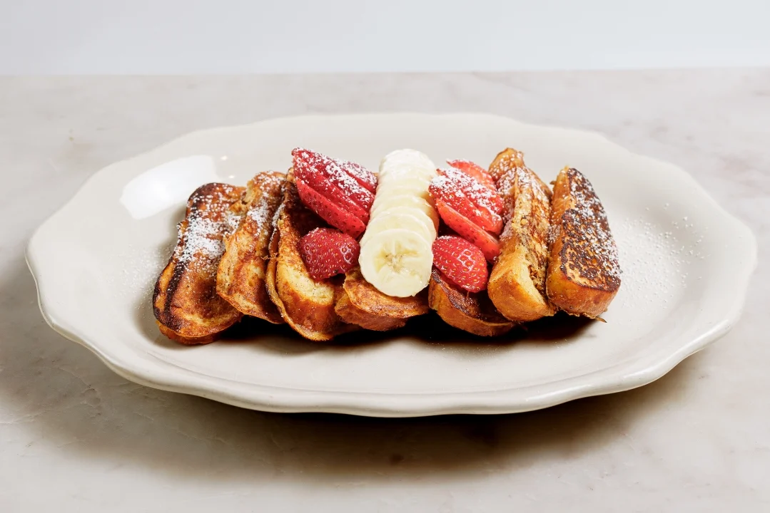 Made with our Brioche Bread topped with Strawberries & Bananas .
