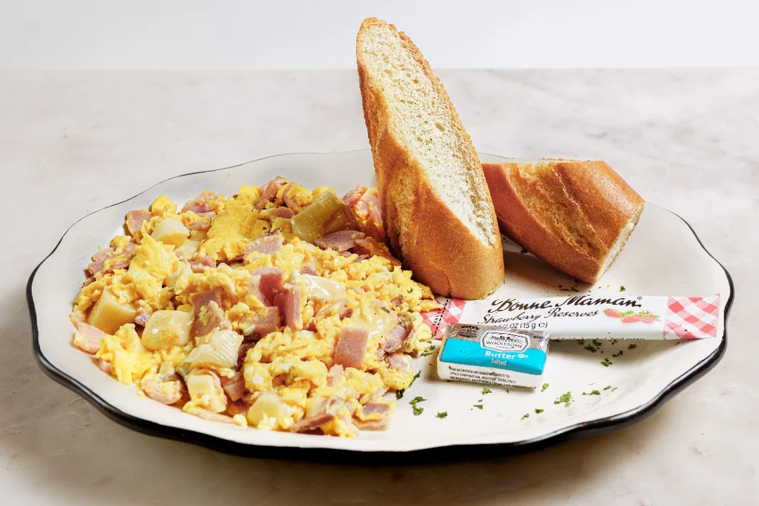Fresh Eggs, Sautéed Ham & Cheese of your choice. (Mild Cheddar / Swiss / Brie)