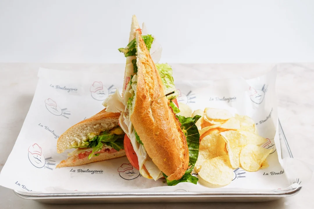 Baguette Bread with Oven Roasted Turkey, Avocado, Lettuce, Tomatoes, Mayo & Dijon.