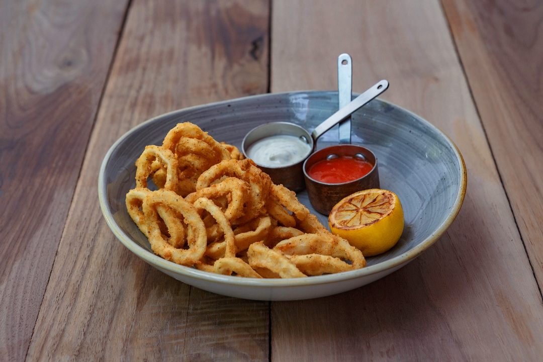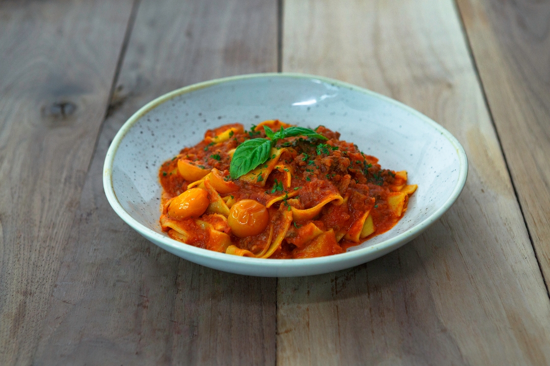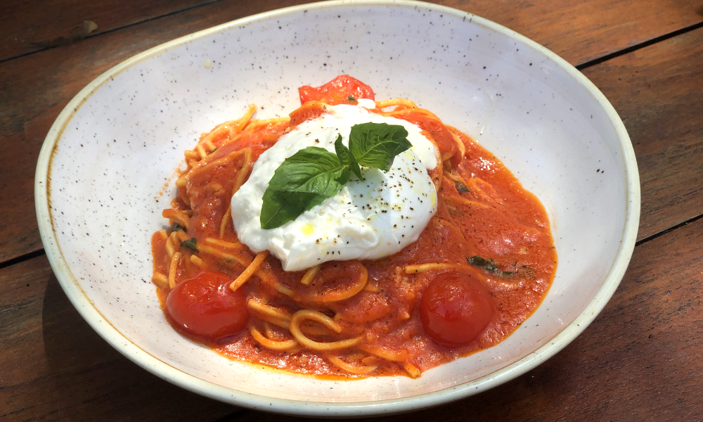 Spaguetti, shrimp, calamari, octopus, pomodoro, capers, olives, crushed red peppers