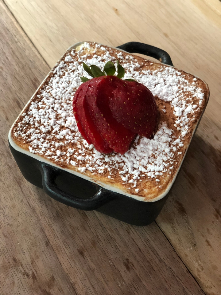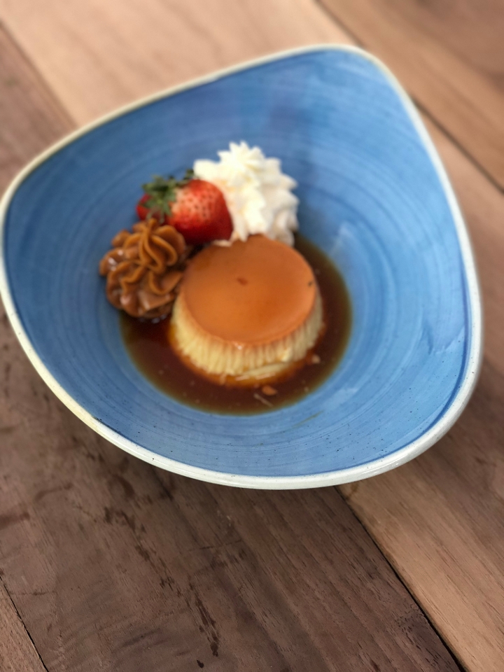 Brioche bread, condensed milk, dulce de leche sauce, whipped cream