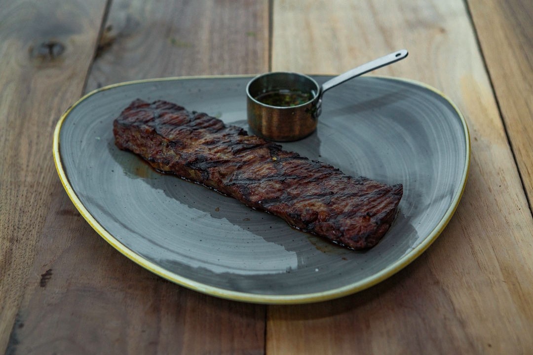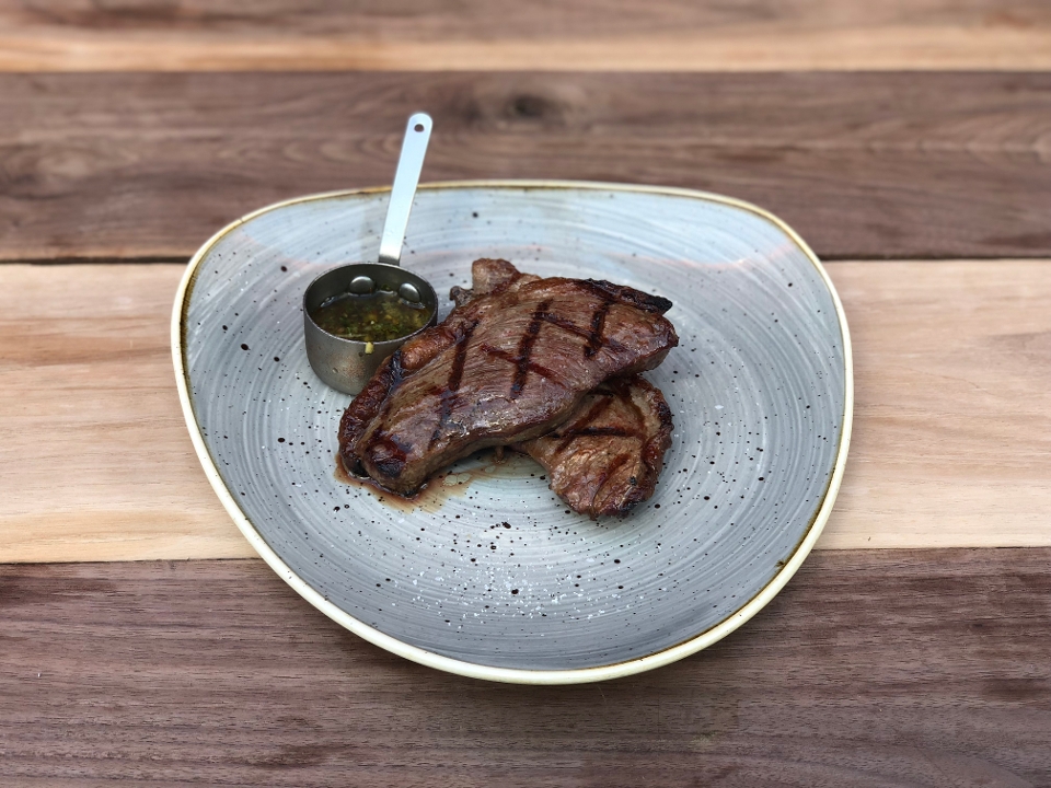 Argentinean NY strip, fried eggs, rustic potatoes, chimichurri