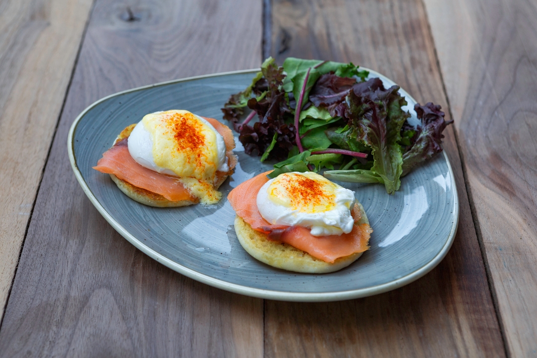 Poached eggs, hollandaise, English muffin, smoked Scottish salmon