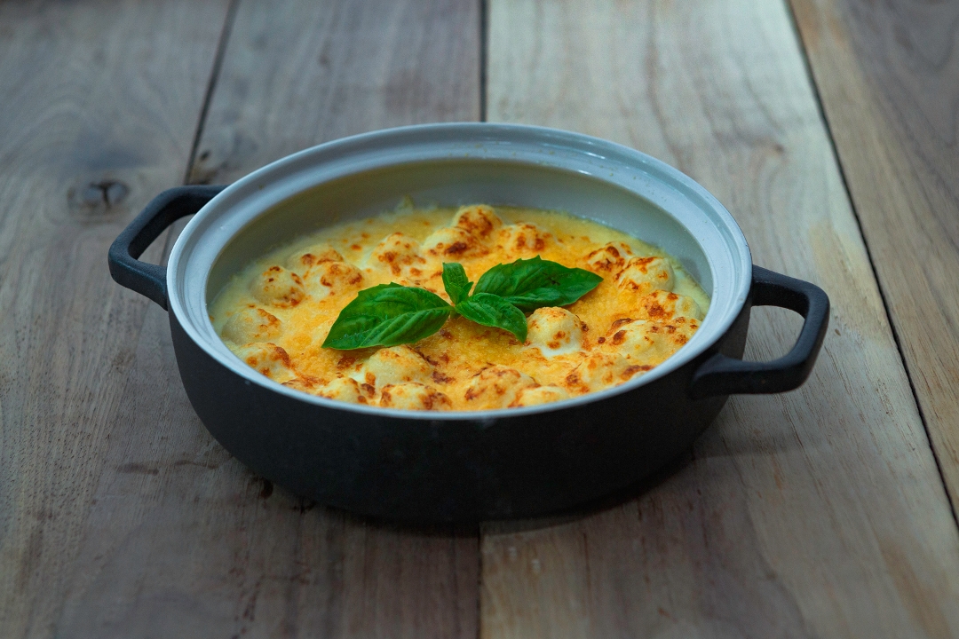 Ricotta gnocchi, Parmesan sauce, au gratin
