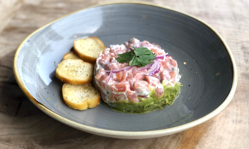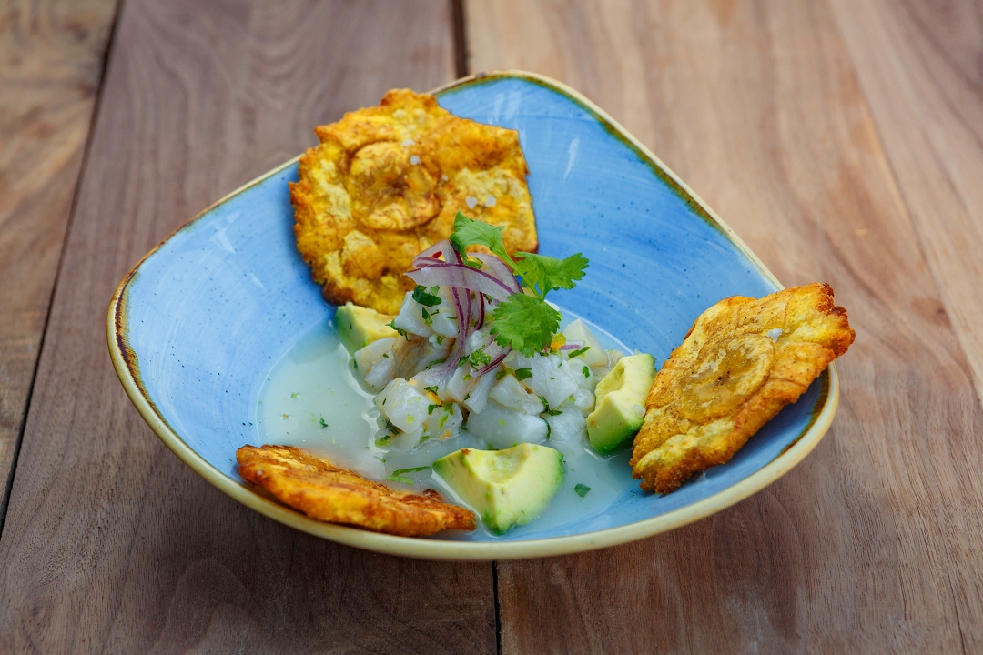 Mahi-mahi, leche de tigre, avocado, smashed green plantains