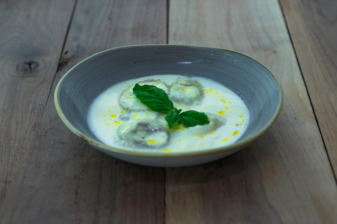 Mushroom and ricotta ravioli, creamy truffle sauce