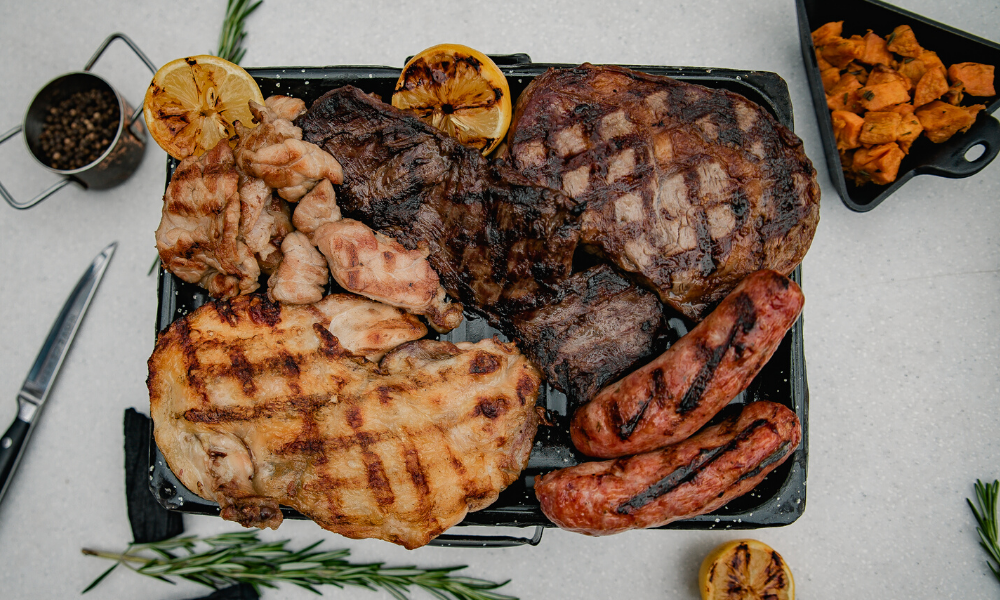 Entraña, Bife de Chorizo, Pollo, Chorizo, Mollejas served with Jasmine Rice, House Salad, French Fries and Mashed Potatoes