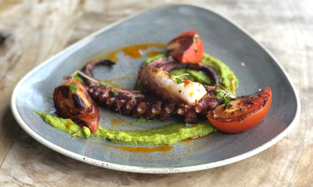 Char-grilled octopus, chimi whipped potatoes, smoked paprika