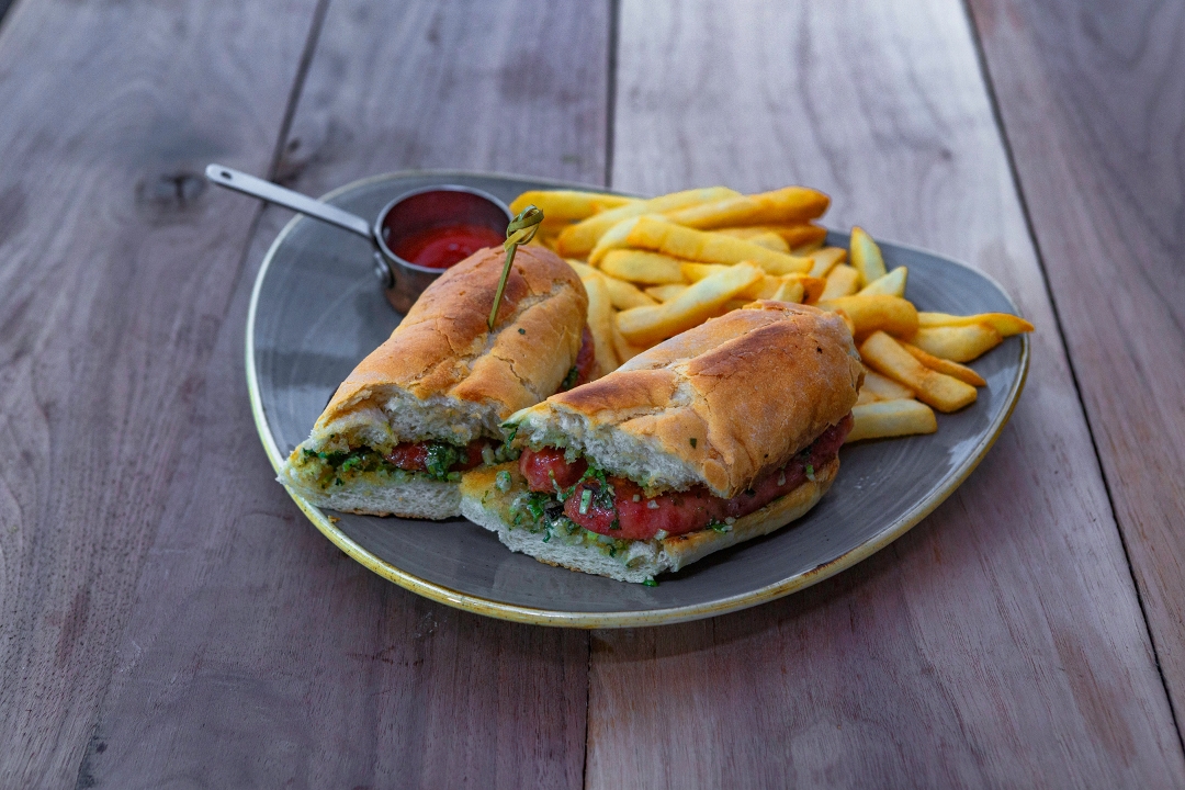 Argentinian sausage, herb aioli, salsa criolla, French baguette