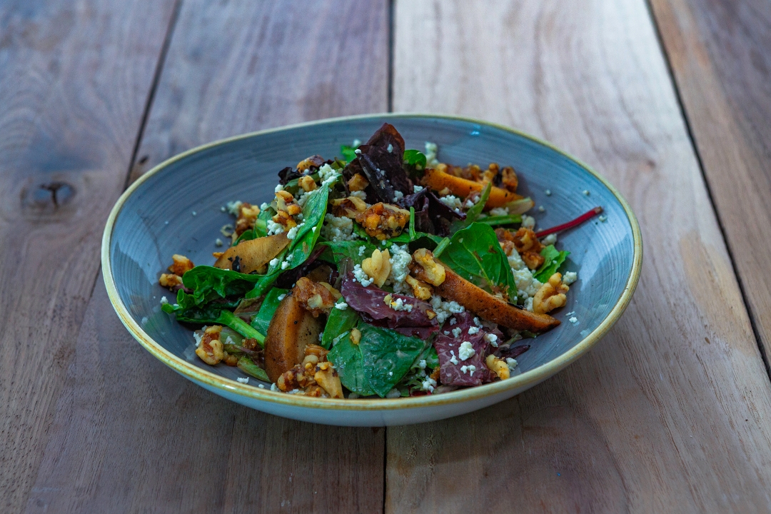 Mixed greens, char-grilled pears, candied walnuts, gorgonzola cheese, house-made vinaigrette