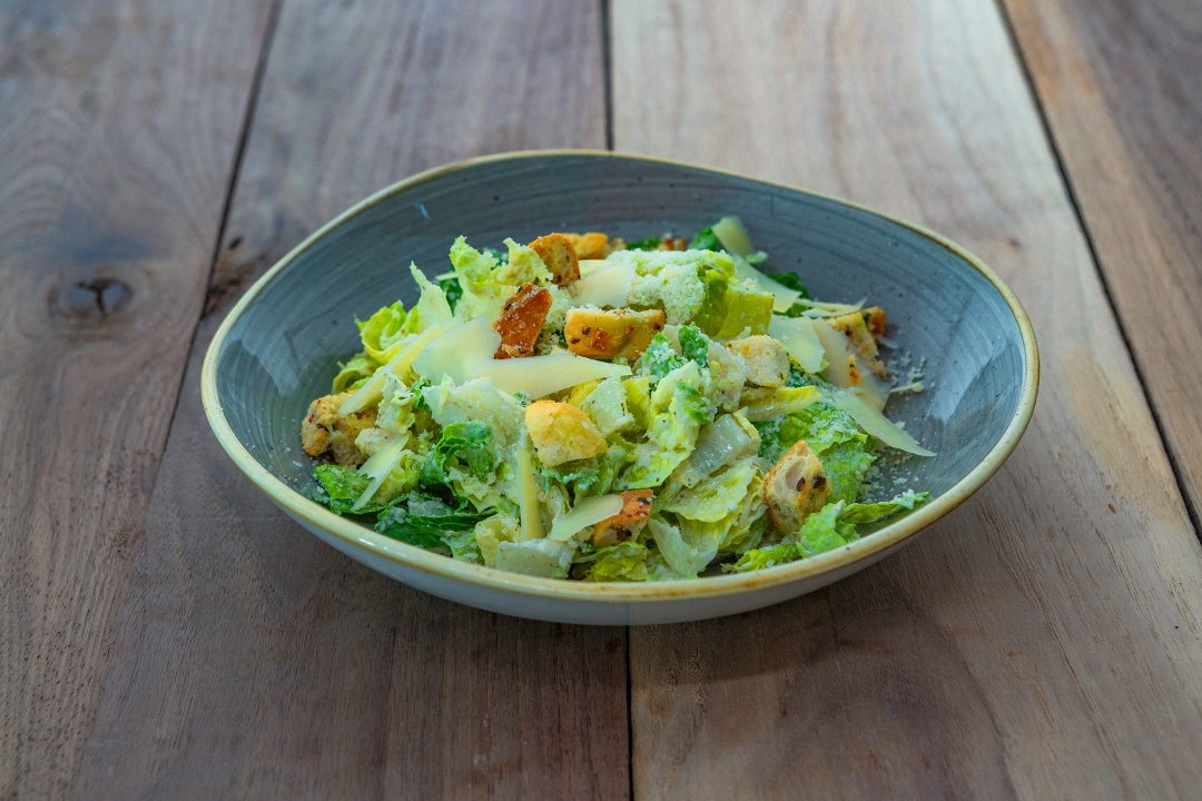 Romaine lettuce, shaved Parmesan cheese, croutons, homemade Caesar dressing