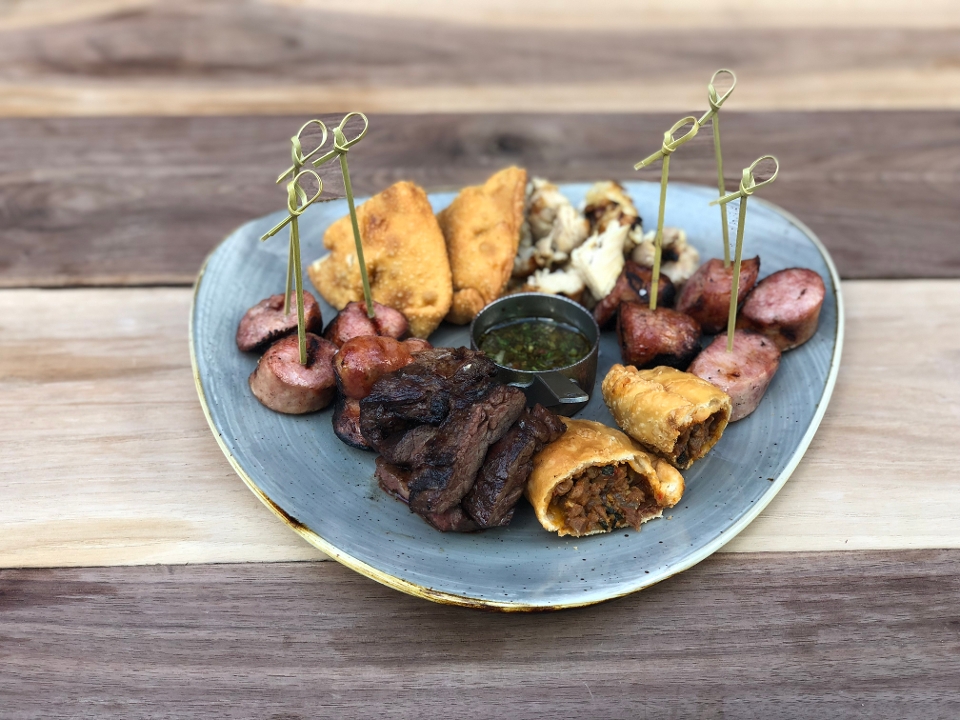 All natural chicken, chorizo, flap steak, and a choice of two empanadas